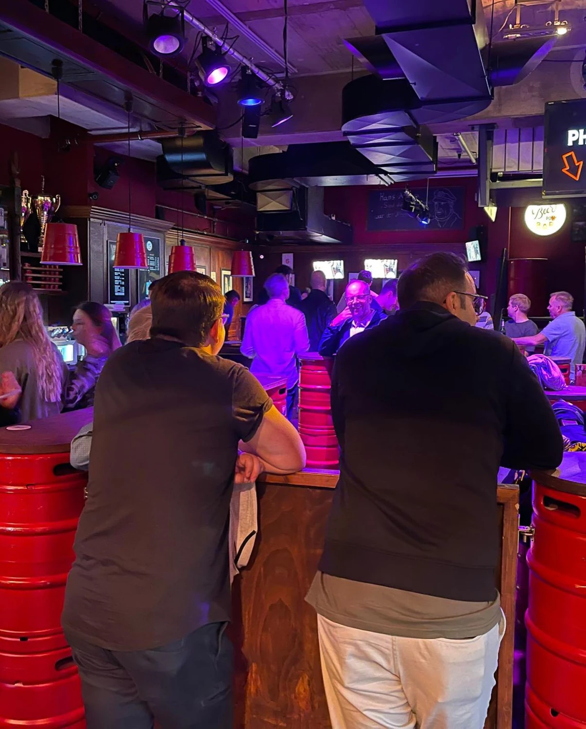 Das Publikum ist eine bunte Mischung aus Kiez-Gängern, Junggesellenabschieden und echten Beerpong-Enthusiasten, was für eine extrem kommunikative Dynamik sorgt. Man kommt hier sofort mit anderen Tischen ins Gespräch, fordert sich gegenseitig heraus und feiert gemeinsam die Treffer. Die Lage direkt am Hans-Albers-Platz macht die Bar zum idealen Startpunkt oder zum Ziel für eine Nacht auf St. Pauli, in der man mehr will als nur rumstehen. Wer Lust auf Action, Wettbewerb und eine unkomplizierte Gemeinschaft hat, findet hier seinen Spot. Ein Laden, der durch seine Energie überzeugt und zeigt, wie viel Spaß ein simples Spiel machen kann, wenn der Rahmen stimmt.