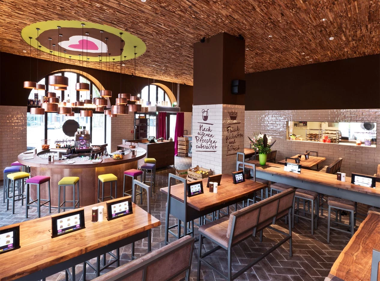 Der Laden selbst hat dieses entspannte City-Tempo: warmes Licht, viel Holz, digitale Bestellung, aber ohne Tech-Getue. Leute kommen rein, wählen schnell, lehnen sich zurück. Ein paar Minuten später steht ein Teller vor ihnen, der aussieht, als wäre er nicht von der Stange, sondern von jemandem gebaut, der seinen Job mag. Die Atmosphäre ist ruhig für die Lage, und genau das macht es angenehm: ein Burgerladen, der nicht schreit. Man kann reden, man kann abschalten, man kann allein essen, ohne sich komisch zu fühlen.