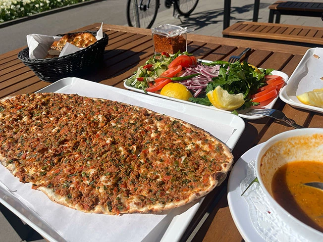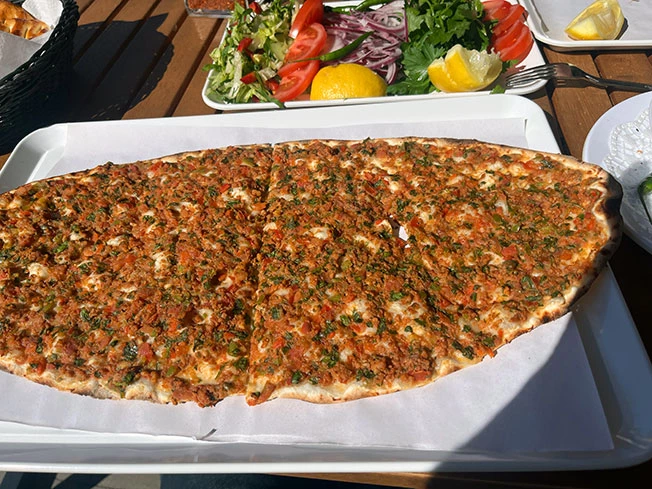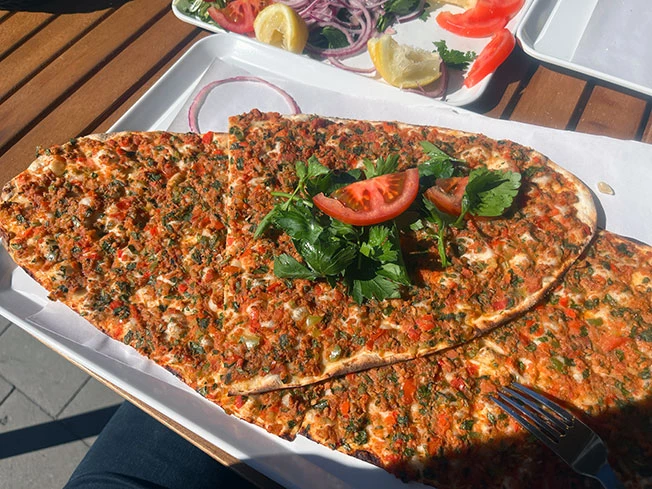 Ungelogen, der beste lahmacun in Town. Das Fleisch ist echt und frisch und der Teig noch frischer, hauchdünn ausgerollt. Und super freundliche Gastgeber. Typisch für Hatay.