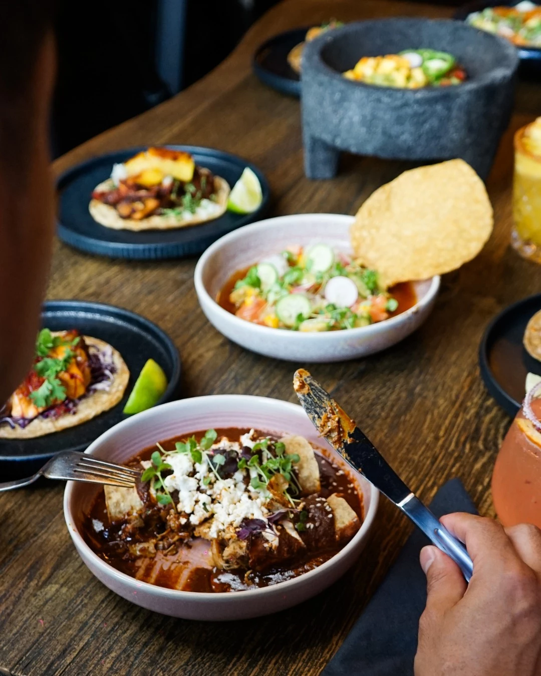 Die Karte ist klein, aber laut: Carnitas, Beef Barbacoa, Chicken Al Pastor, vegane Varianten mit richtig Struktur – nichts davon wirkt aufgesetzt. Jede Tortilla kommt warm, leicht gebräunt, mit einer Füllung, die auf der Reeperbahn nur funktioniert, weil sie Wucht hat. Salsa verde, Chili-Öl, Limette – alles auf den Punkt. Wer die Loaded Nachos bestellt, bekommt keinen Deko-Snack, sondern ein ernstes Brett aus Käse, Jalapeños und ordentlich Fleisch. Viele Stammgäste schwören auf die Kombi aus Taco-Trio und kaltem Bier, weil sie mit einem Schlag satt und glücklich macht.