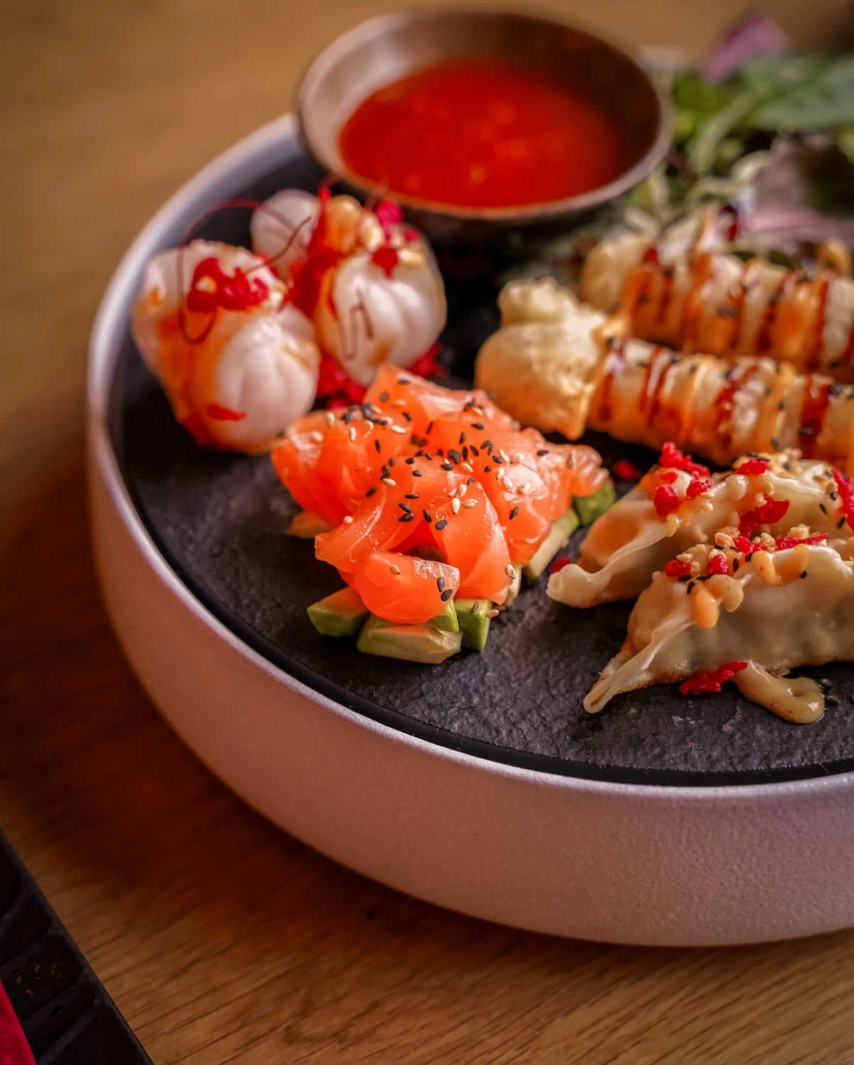 Tokoro arbeitet mit einer klaren Linie: sauberes Sushi-Handwerk, konzentrierte Abläufe und eine Karte, die nicht versucht, alles gleichzeitig zu bedienen. Der Laden setzt auf klassische Maki, Inside-Out-Varianten und eine Auswahl an warmen Gerichten, die strukturiert umgesetzt werden. Die Produkte wirken durchgehend frisch, und die Portionierung bleibt nachvollziehbar – keine übergroßen Rollen, keine verwässerte Optik. Die Küche arbeitet ruhig und präzise, was man vor allem bei den geschnittenen Rollen merkt. Auch das Zusammenspiel von Reis und Füllung ist stimmig und vermeidet die typischen Schwankungen, die man bei günstigeren Läden oft findet. Insgesamt entsteht der Eindruck eines Betriebs, der Wert auf Genauigkeit legt, statt auf schnelle Masse.