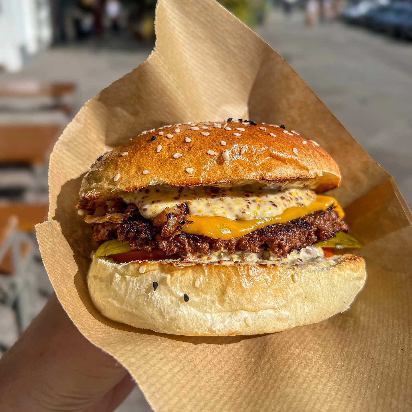 Der Laden war schon gut gefüllt, obwohl es noch hell war. Bei VEG’D – Vegan Burger in der Richardstraße 108 in Neukölln saßen Leute dicht beieinander, Burger in der Hand, Jacken über den Stühlen. Bestellt wurde ruhig und direkt, ohne Nachfragen, ohne Erklärungen. Man merkt schnell, dass hier viele Stammgäste kommen. Niemand macht ein Thema daraus, dass alles vegan ist. Es läuft einfach. Genau das macht es angenehm. Der Burger kam heiß und stabil, nichts fiel auseinander. Das Patty hatte Biss und Geschmack, nicht weich, nicht trocken. Die Soße war präsent, ohne alles zu überdecken, das Brötchen hielt, was es sollte. Pommes dazu, außen knusprig, innen weich, kein Schnickschnack. Am Tisch ging es nicht um Zutaten oder Konzepte, sondern darum, ob man noch einen zweiten nimmt. Einer meinte nebenbei, dass er nach dem Training öfter hier landet, weil es satt macht.