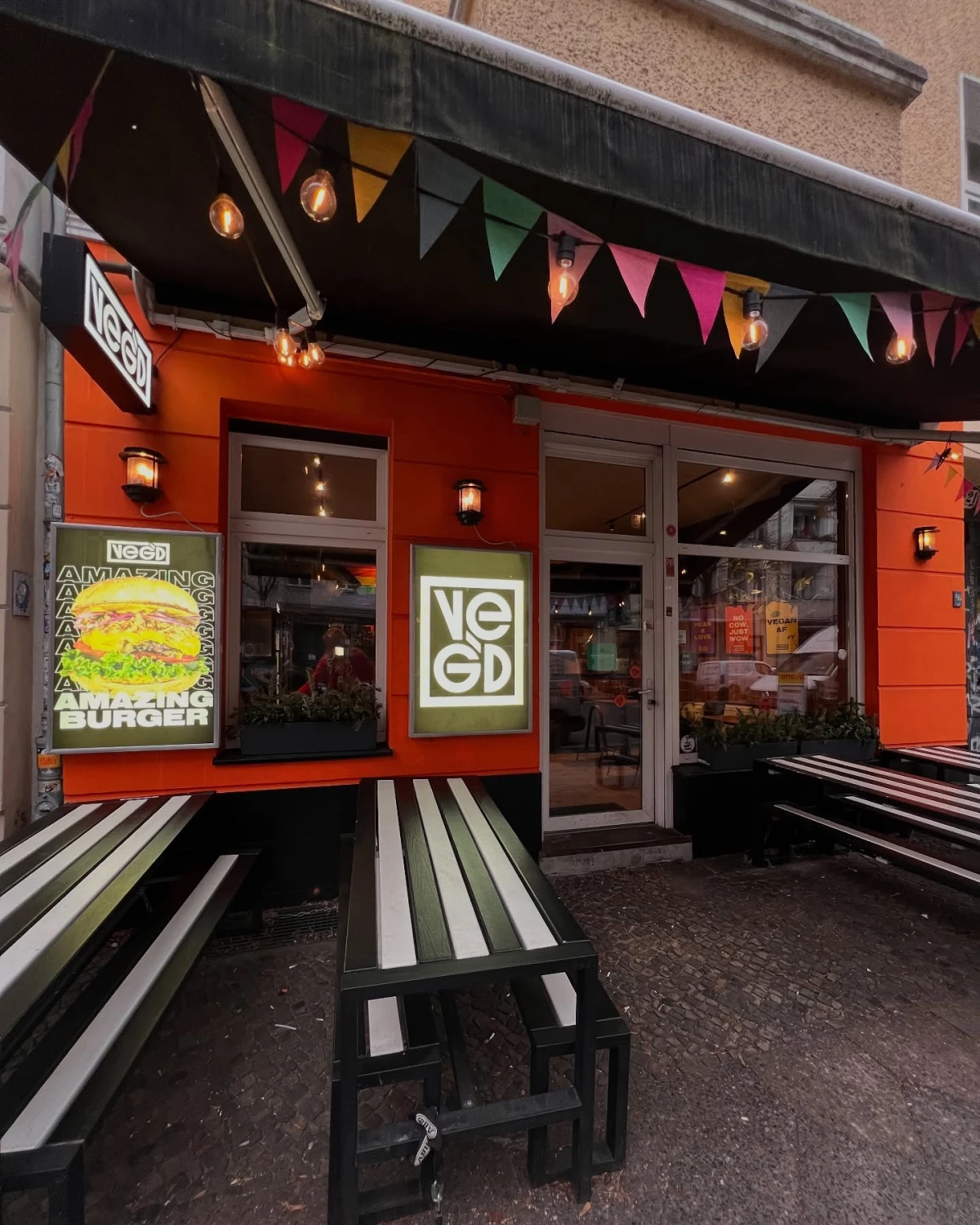 VEG’D gibt es in Neukölln schon eine ganze Weile, und genau das merkt man. Der Laden gehört zum Kiez, nicht umgekehrt. Viele kommen rein, grüßen kurz, holen ihr Essen oder bleiben sitzen. Draußen läuft die Richardstraße weiter, drinnen ist kurz Pause. Kein Auftritt, keine Message, kein Überreden. Wenn man in Neukölln unterwegs ist und Hunger hat, passt das hier einfach.