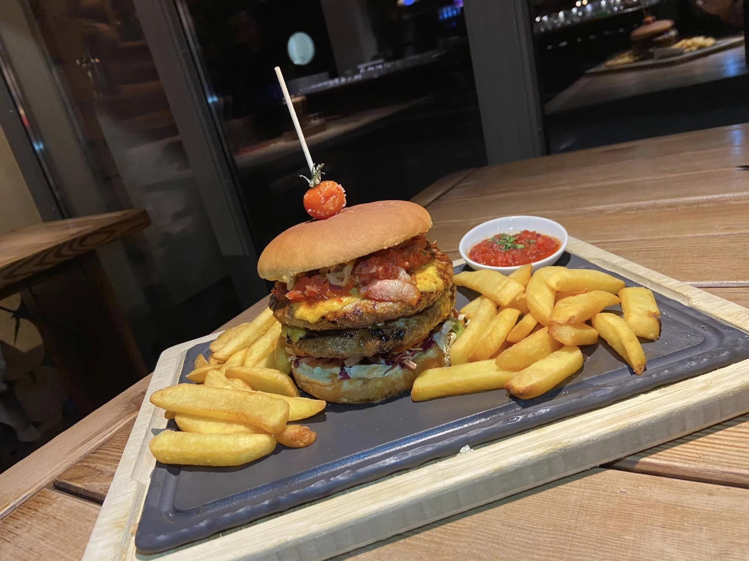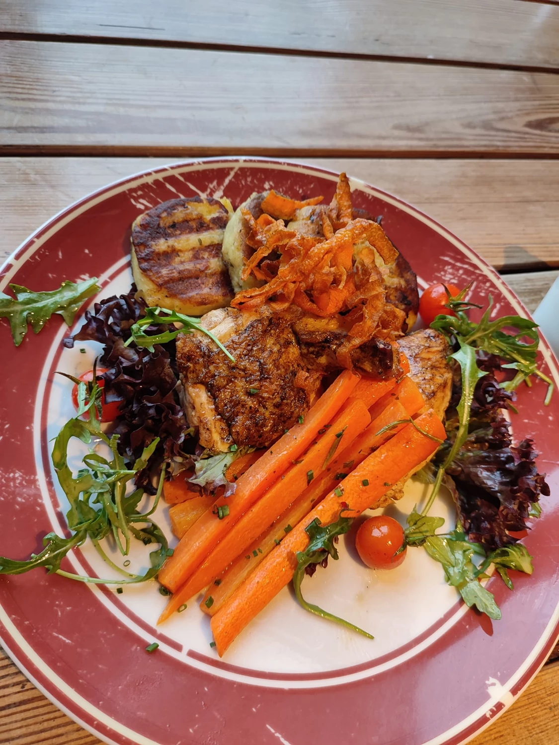 Ribeye, Filet und Rumpsteak stehen auf der Karte und kommen exakt gegrillt auf den Tisch. Jede Zubereitung punktet mit Saftigkeit, klarer Würze und Textur, die Fleischliebhaber sofort erkennen. Beilagen wie geröstetes Gemüse, Ofenkartoffeln oder hausgemachte Saucen sind konsequent abgestimmt, nichts überflüssig. Die Küche setzt auf Präzision statt Show – jedes Gericht funktioniert eigenständig und im Zusammenspiel mit dem Drink. Die Weinkarte bietet gezielt passende Begleiter, von kräftigen Rotweinen bis zu leichten Weißweinen, die zu Fisch oder Salaten passen.