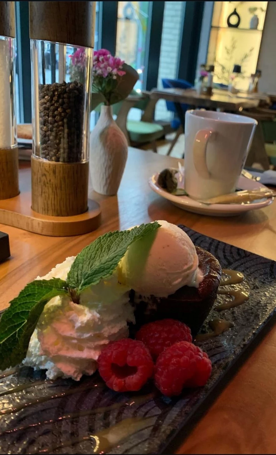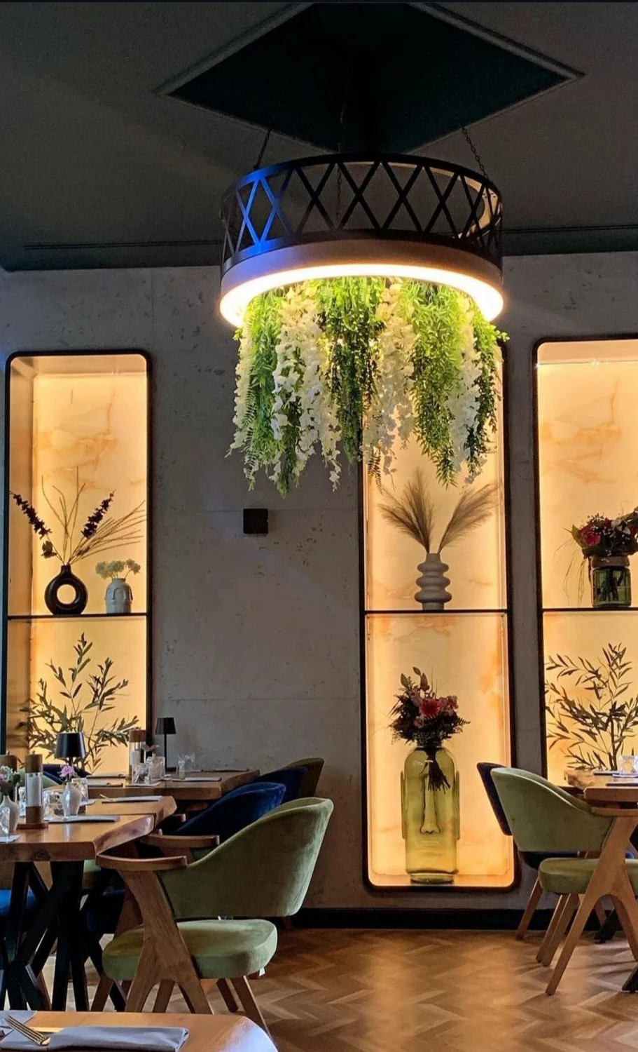 Das Mavi liegt mitten in der HafenCity, direkt am Kaiserkai, zwischen Wasser, moderner Architektur und den abendlichen Lichtern des Quartiers. Die Terrasse zieht viele Gäste an, die die ruhige Uferlage nutzen – ein Vorteil, den man in Hamburg selten so konkret bekommt. Drinnen: warme Farben, Stein, Holz, ein entspannt elegantes Setting. Die Küche arbeitet sichtbar mit Grill und offener Hitze, der Duft zieht durch den Raum und setzt den Ton für das, was serviert wird.