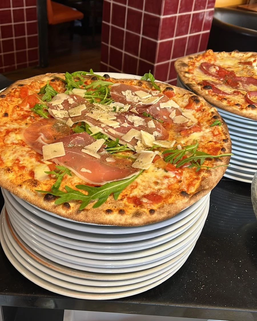 Im Tuscolo herrscht diese Energie, die man aus italienischen Familienrestaurants kennt: Stimmen füllen den Raum, Gläser klirren, irgendwo zischt eine Pfanne. Die Pizzen kommen direkt aus dem Steinofen, dünn, knusprig, duftend – mit leicht verbrannten Rändern, die zeigen, dass hier mit echter Hitze gearbeitet wird. Beläge sind üppig, ohne zu überladen, Tomaten kräftig im Geschmack, der Mozzarella zieht Fäden. Dazu hausgemachte Pasta mit sämigen Saucen, die nicht auf Show, sondern auf Handwerk setzen.