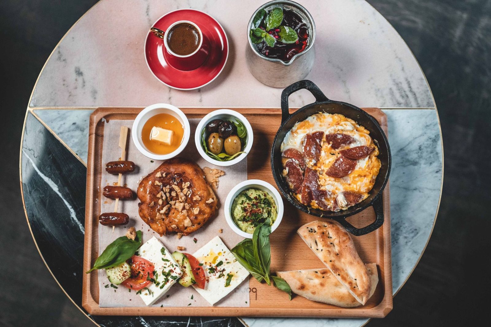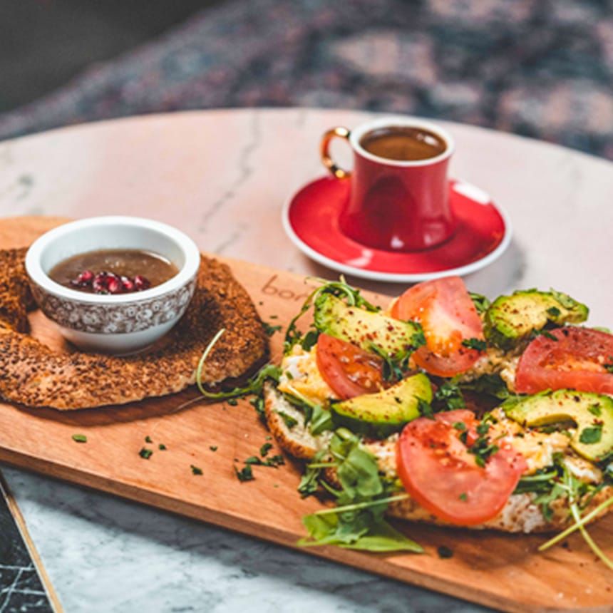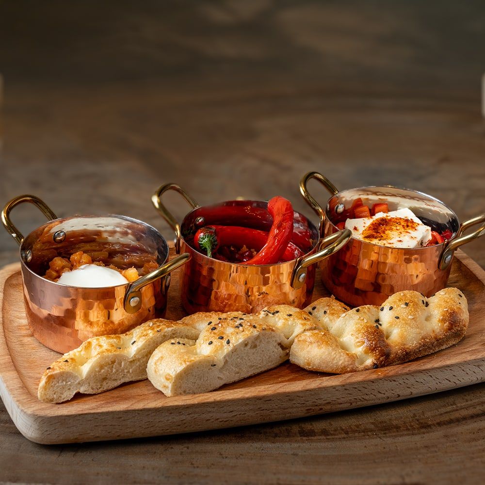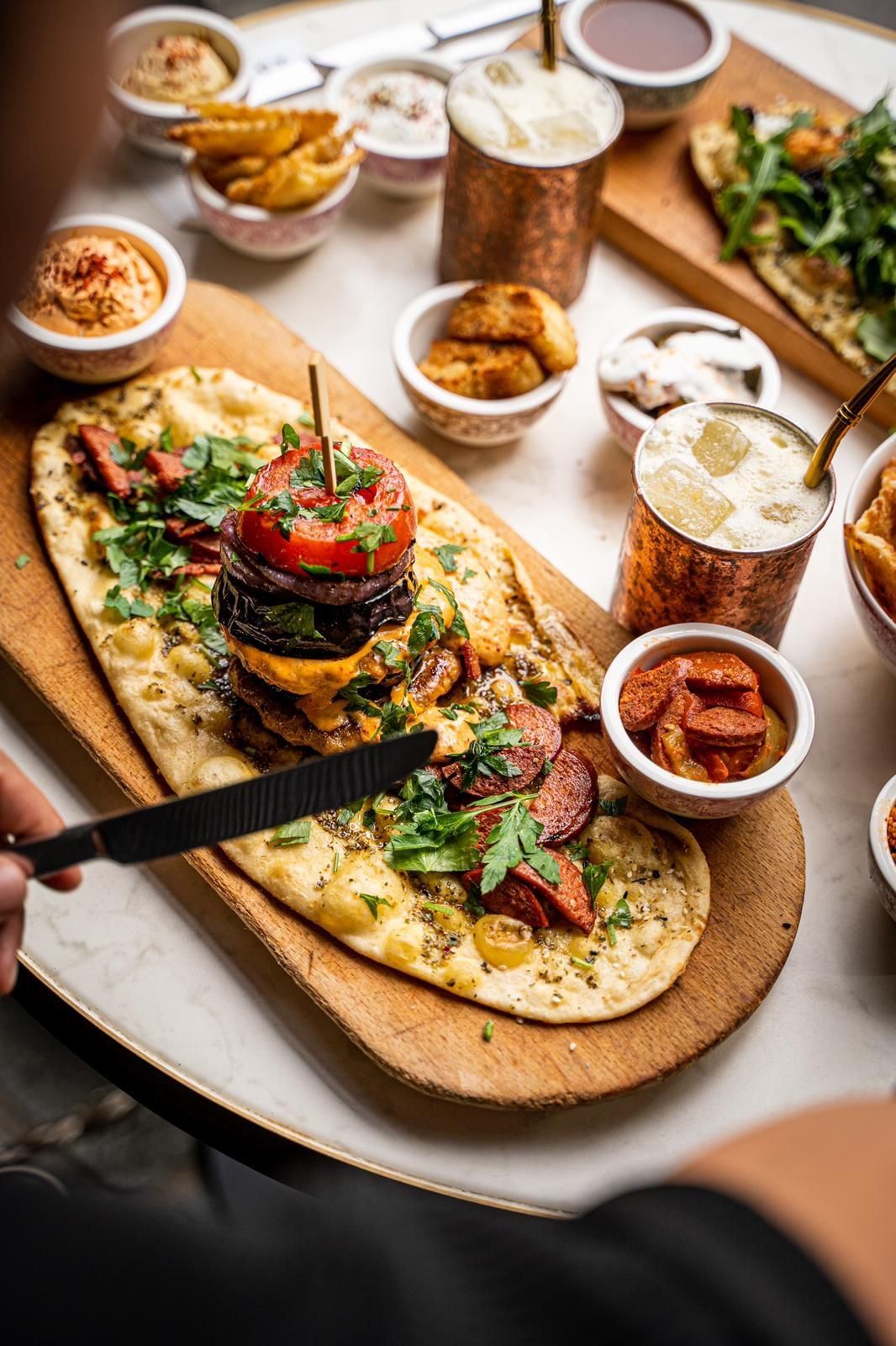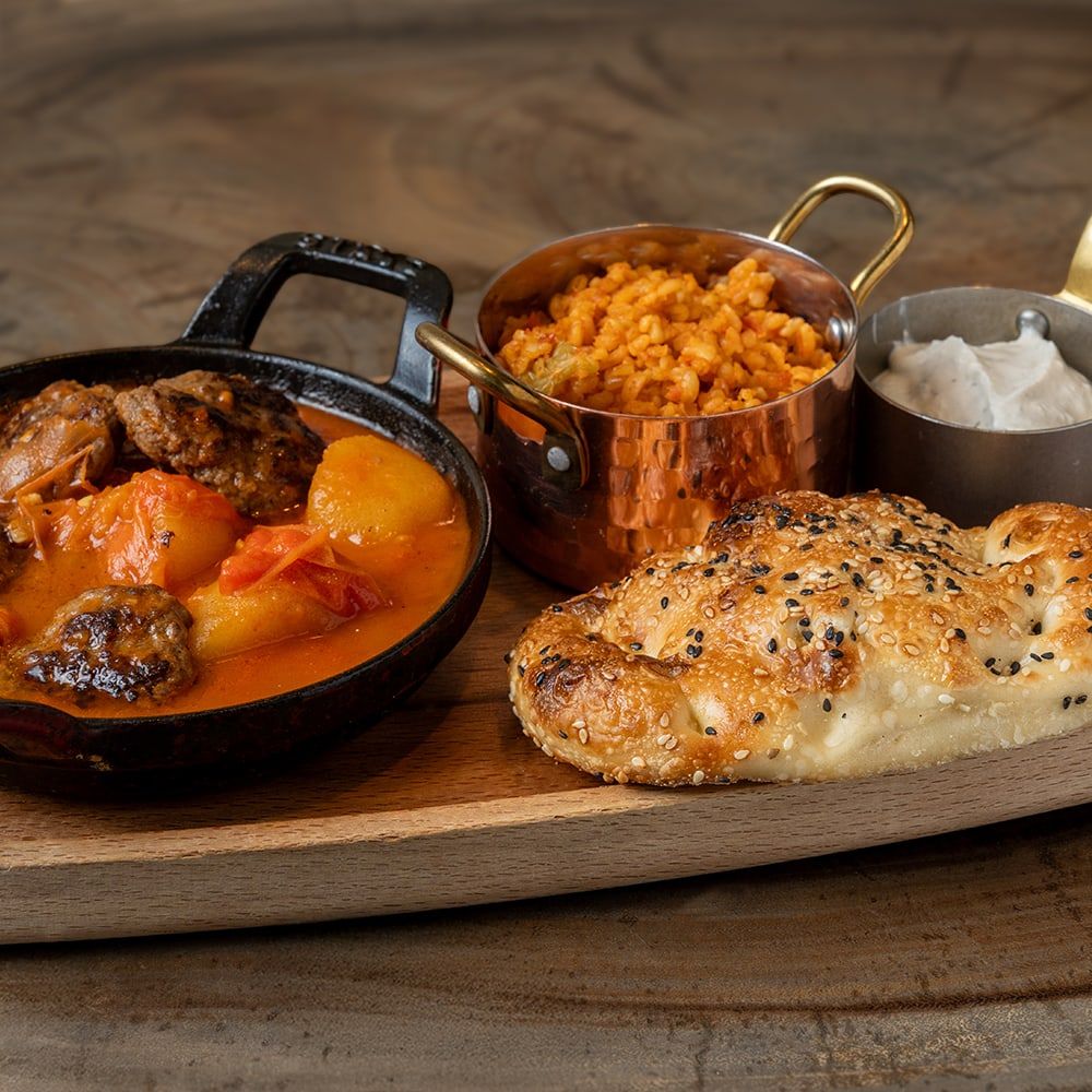 Die Speisekarte vereint traditionell-orientalische Gerichte in moderner Interpretation: frisch belegte Pide, vegane und vegetarische Spezialitäten, Meze zum Teilen sowie fein gewürzte Fleischgerichte, Grill und hausgemachte Pasta. Frühstücksangebote gehören ebenso zum Markenkern wie kreative Patisserie und wechselnde saisonale Gerichte.